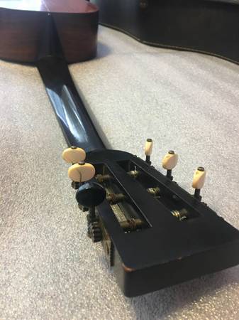 This Martin Guitar has been dated by professional guitar dealers to be made from an estimated date range of 1867 to early 1870’s, it has the ice-cream cone heel, one of the tuner knobs is not original, the guitar did have some work on it, by TJ Tompson the world wide known guitar builder. There was a very minor crack that he fixed wonderfully, he also replaced the bridge, I still do have the original bridge on hand. I will also be selling this guitar with an 1800’s music book. The guitar plays wonderfully, an extraordinary deep and rich nylon tone. For some reason the first fret with the Low E string only gives back a buzz noise when played. Other than that the guitar is in wonderful cosmetic condition. If there is anything else you’d like to know about this guitar please ask!