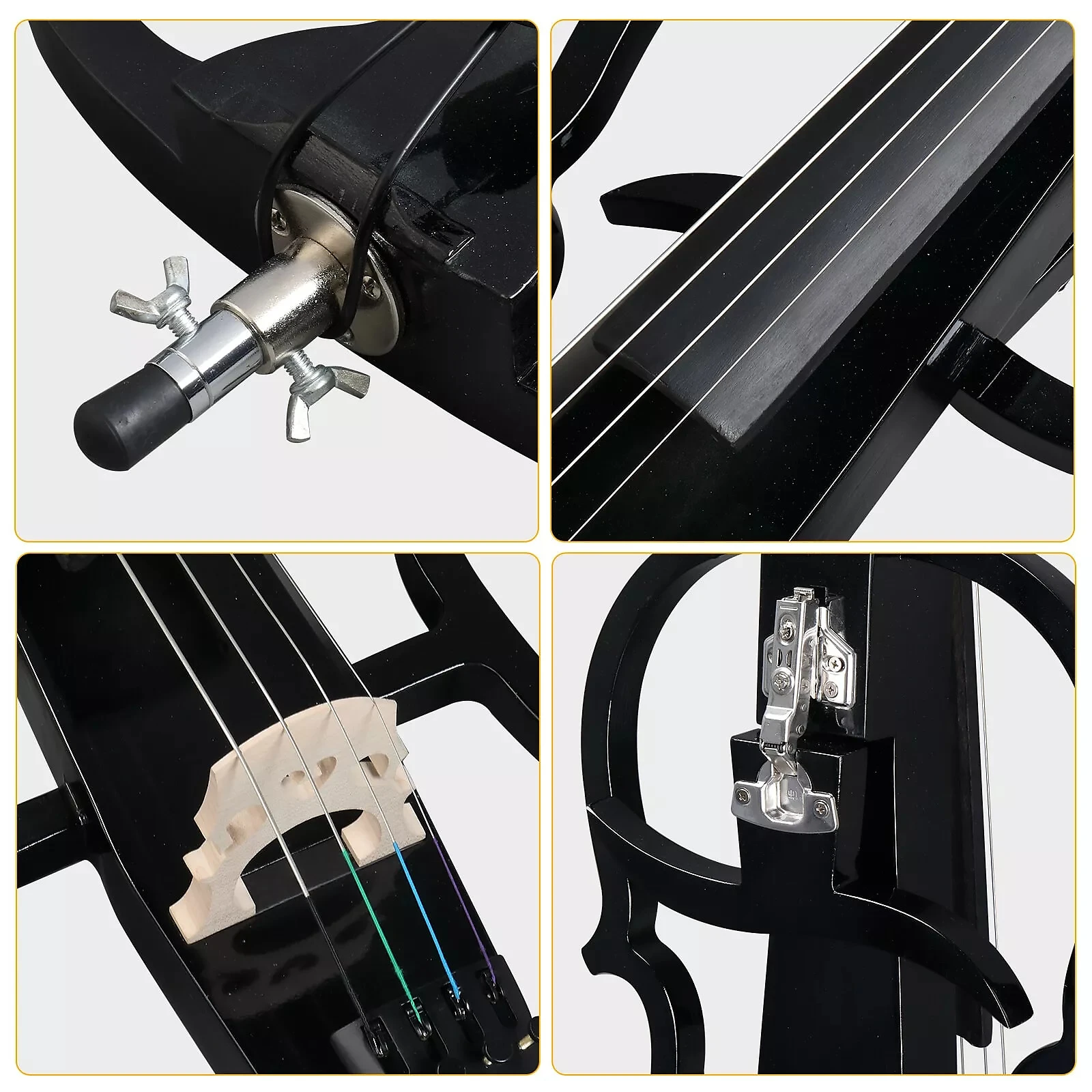 Full Size 4/4 Electric Cello – Black with Case, Bow, Rosin & Earphones