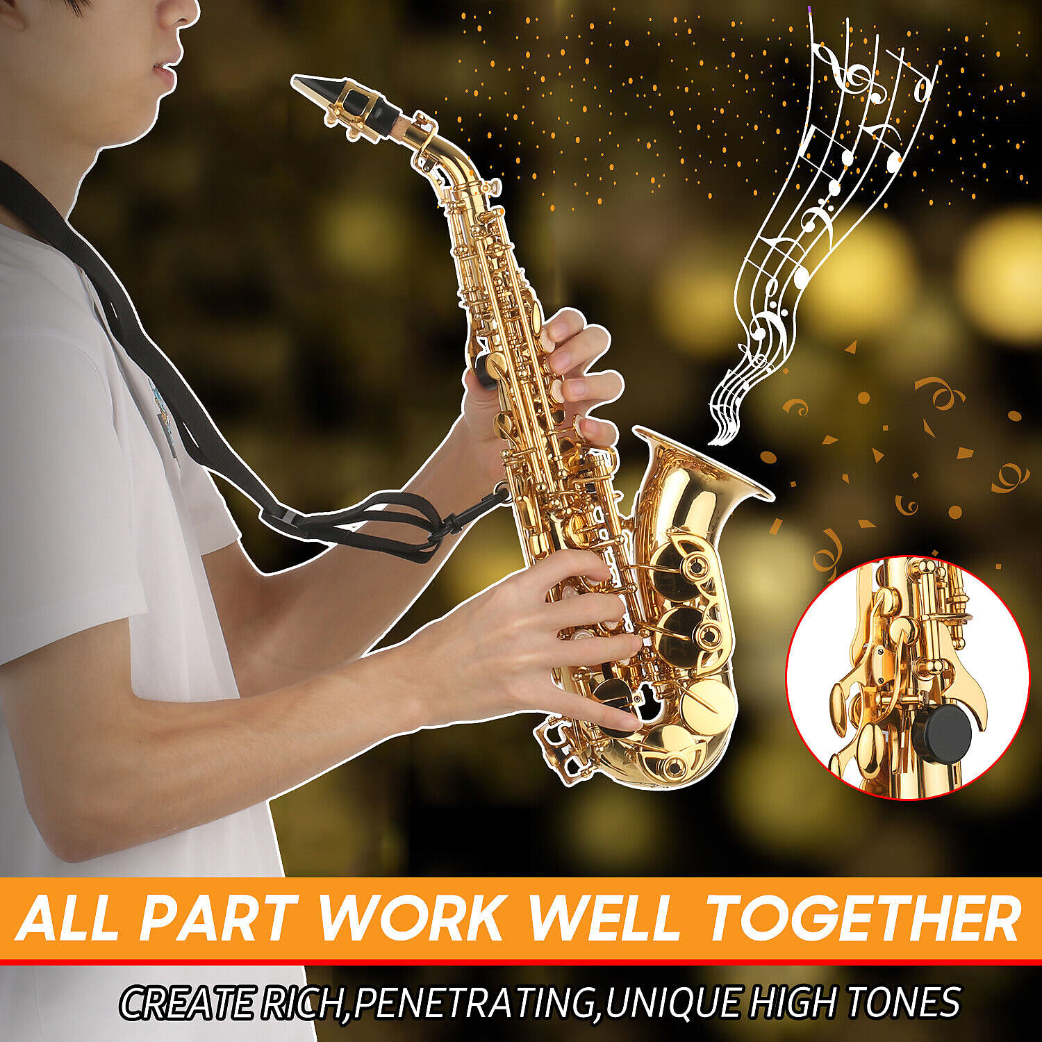 Saxophone Curved Brass Gold Lacquer Bb Sax + Carry Case Accessories W6B6